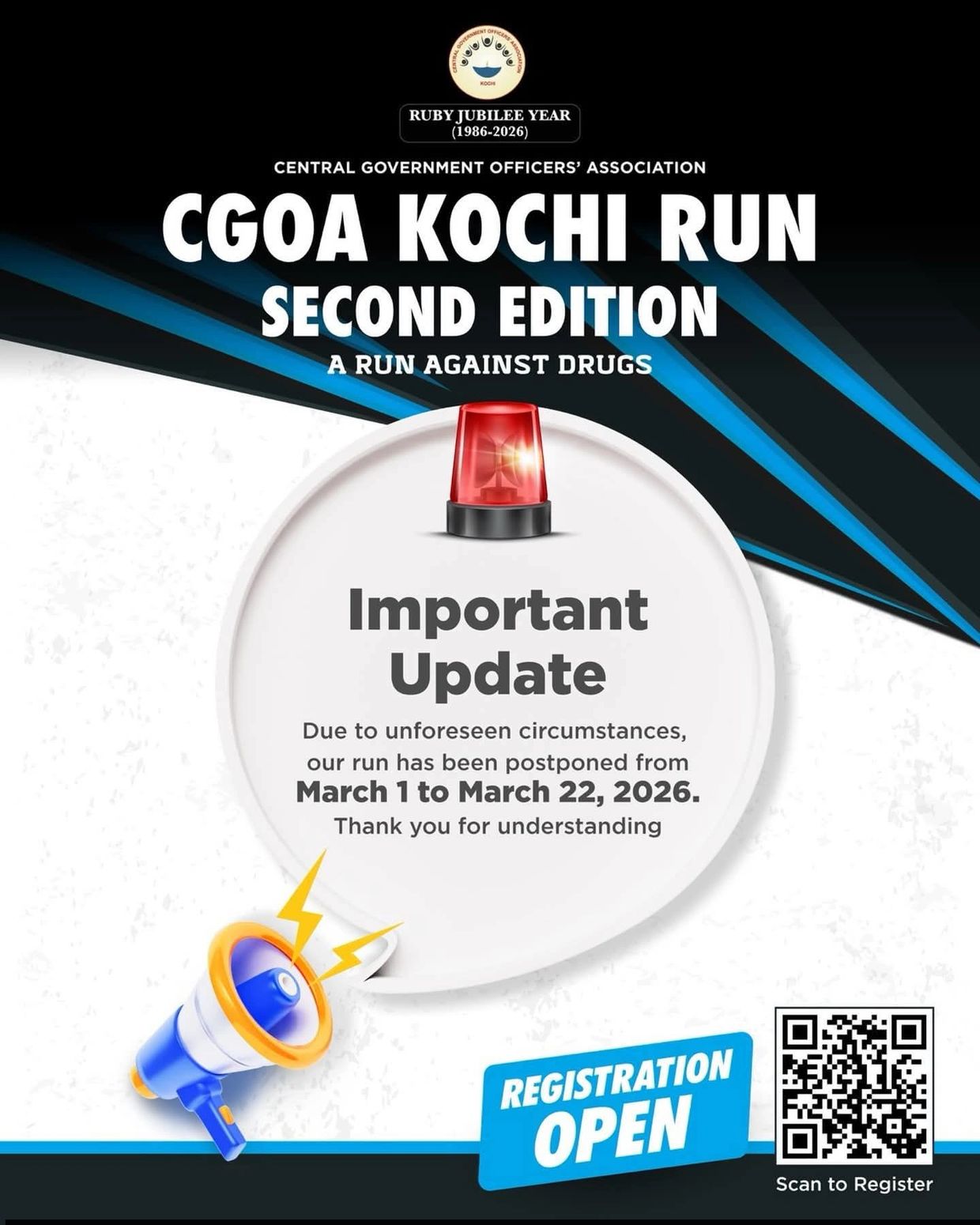 So friends, let's join him the 𝘾𝙂𝙊𝘼 𝙆𝙤𝙘𝙝𝙞 𝙍𝙪𝙣, a run against drugs on 22nd March at Ernakulam!